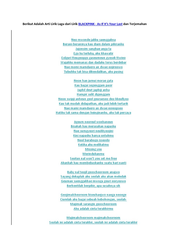 This production is musically considered danceable and energetic. Blackpink as if it's your last lyrics & video : Download lagu terbaru, gudang lagu mp3 gratis terbaik.